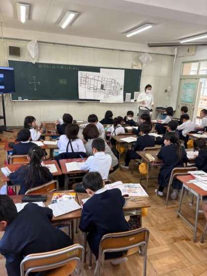 3年生になり、社会科が始まりました。最終は東西南北を学習します。今日の授業では方角を学習し、自分たちの身の回りの地域について学習していました。担任の先生力作の高殿地図はとても見やすく、子どもたちも高殿の地域がどのような形をしているのか理解している様子でした。