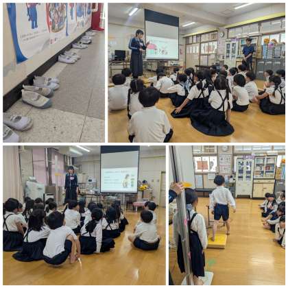 写真は1時間目の1組。養護教諭の話にうなづきながら、とても上手にお話を聞くことができる子たちです!