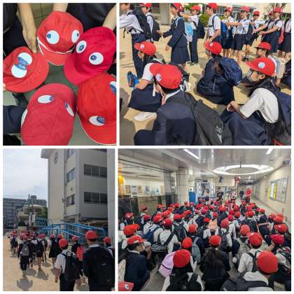 なんと帽子がミャクミャクに!気分も絶好調です♪いつもの通り、見送ってくださる教職員に手を振りながら「行ってきまーす♪」