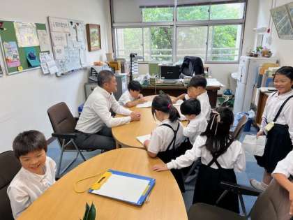 教職員の話を興味深く聞き、一生懸命にメモをしていました♪