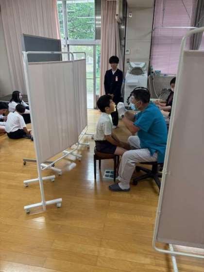 6年生は本日歯科検診を行いました。歯の1本1本を丁寧に磨けているか、虫歯がないか、炎症などおこしていないかなどの検診です。歯はとても大切です。毎日丁寧に歯磨きすることを心がけてほしいですね。