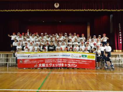 あいさつの後は、エベッサの選手が試合前にいつもするという掛け声をみんなで元気にしました。