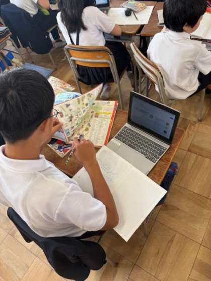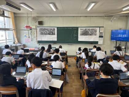 みなさんは縄文時代と弥生時代、タイムスリップするならどちらの時代に行ってみたいですか。今日の6年生の社会科では「どちらの時代が幸せ」なのか、という題材でした。それぞれの時代の人々の暮らし方や使われていた物、人々の心などを調べ、個人で考える学習でした。それぞれの時代によさがあるので難しいですね。