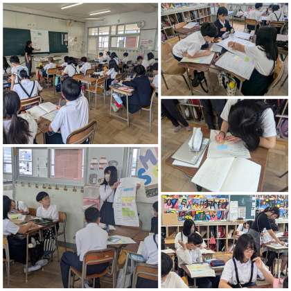 写真は昨日の1組。国語「いざというときのために」の単元を用いて、読解力育成カリキュラムのねらいに則った授業をしました。まずは内容を理解し、要約することが重要です。台風の備えについて、読み手に伝わりやすい論の進め方の順序について意見交流をしました。自分の考えを班の友だちに伝えるときの雰囲気がとても穏やかでした。