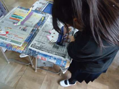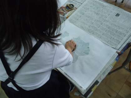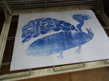 ローラーでインクをしっかりつけて、バレンでていねいにこすると、きれいでダイナミックな版画ができました。