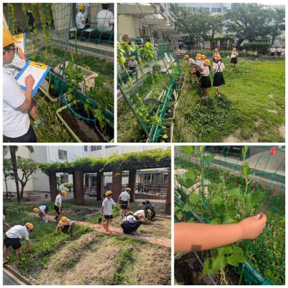 写真は3組。観察を終えた子たちが学習園の雑草抜きをがんばっていました!