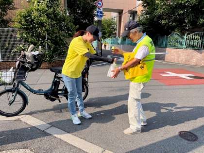 暑い時も、寒い時も子どもたちの安全のために見守ってくださっている見守り隊の方へ子どもたちの手紙と共にお礼に伺いました。