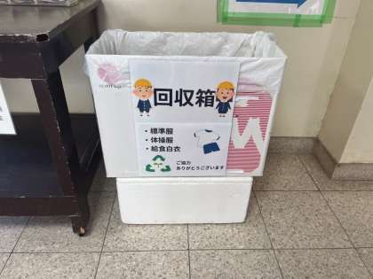 懇談期間中、玄関に標準服の回収ボックスを設置しています。使わなくなった標準服等のご寄付をよろしくお願いします。