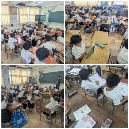 4組は国語。ローマ字ドリルからスタート。町の中にもあちらこちらにあるローマ字。しっかり覚えよう!