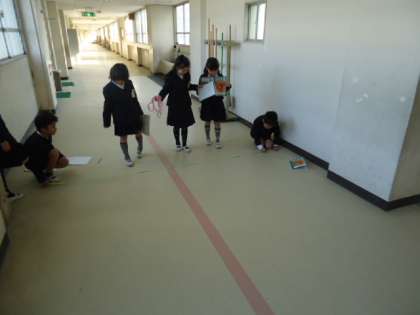 聞けば、自分たちで作ったメジャーを使って、学校中の物差しで測れないような長いものを測るのだそうです。