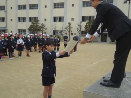 ※今日の児童朝会では、学校外で優秀な成績をおさめた児童の表彰を行いました。