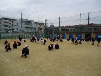 また、児童朝会に引き続いて、全校児童と教職員で、運動場の石拾いを行いました。