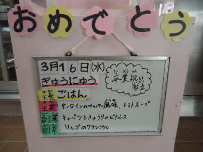 1年生から5年生までは、「おめでとう」の気もちで、6年生は「ありがとう」の気もちで食べる事はできたでしょうか。