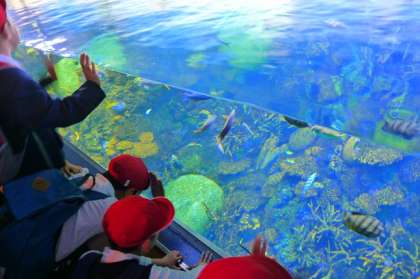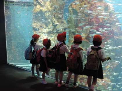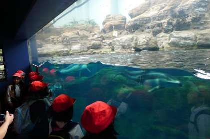 学級ごとにゆっくり館内を一周して、いろいろな魚や海の生き物を見る事ができました。