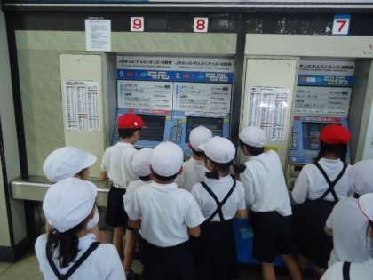 大阪城を眺めながらお弁当を食べた後、切符を買いにみんなで駅まで行きました。
