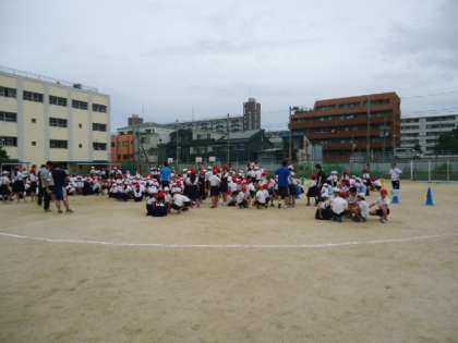 ルールは簡単、リーダーの集会委員が言った名前の文字の数だけ集まります。