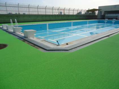 耐熱性のある素材なので、コンクリートだけのプールサイドに比べると、熱くなりにくく、肌触りもソフトです。