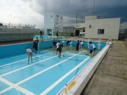 そして今日は、来週から始まるプール水泳に向けて、教職員でプールの清掃や用具の点検などをしました。