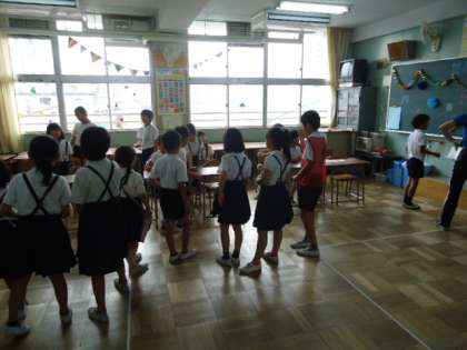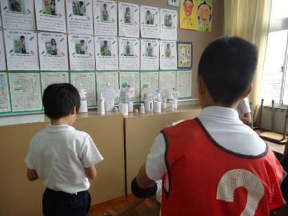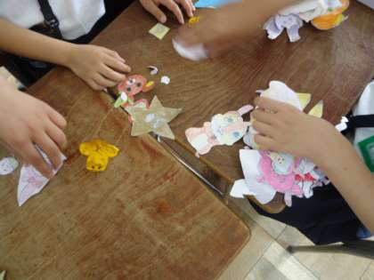 牛乳パックで作ったてっぽうを使った射的です。なかなか思った方向に飛んでくれないので難しいのですが、そこが面白い所です。