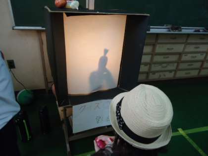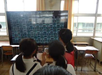 画面に拡大されたものが何かを当てるクイズです。一部分だけ拡大すると結構わからないものです。ICT機器をフル活用しています。