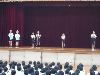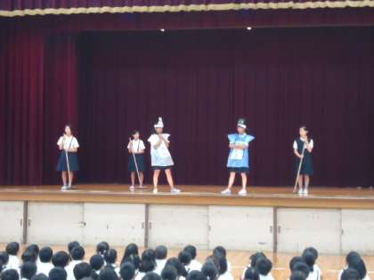 清掃について、クイズを交えたお芝居を披露してくれました。
