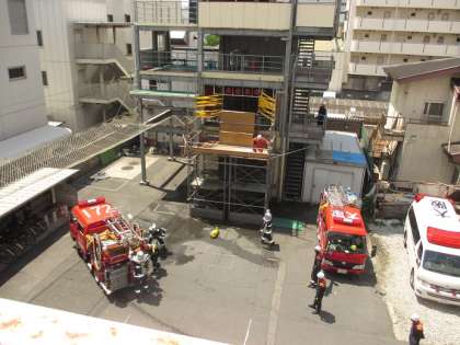 消防士さんの一日の仕事を映像で見せていただいたり、実際の訓練の様子を見せていただいたりしました。
