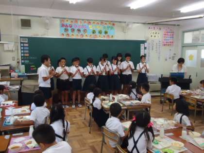 歌い終わると1年生のみんなが拍手でアンコールです。