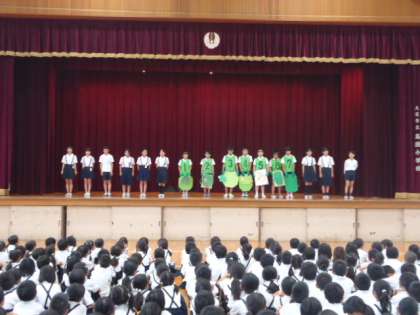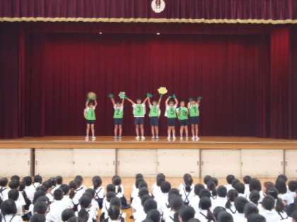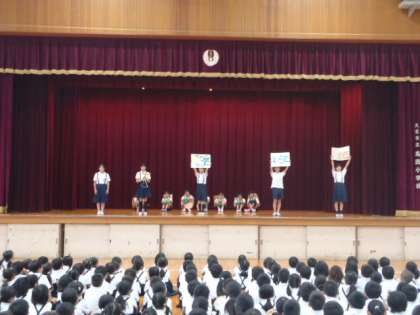 今日の児童集会は、飼育栽培委員会の発表でした。