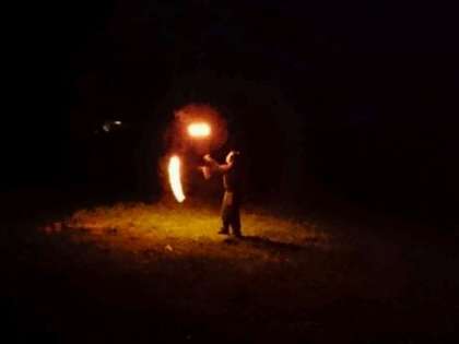 宿舎のスタッフの方には、トーチを使った圧巻のファイアースイングも見せていただきました。
