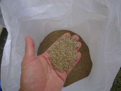 この後、2〜3週間で、芽が出てきて、1〜2か月で緑の芝生になるそうです。