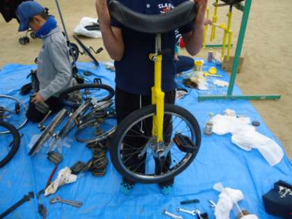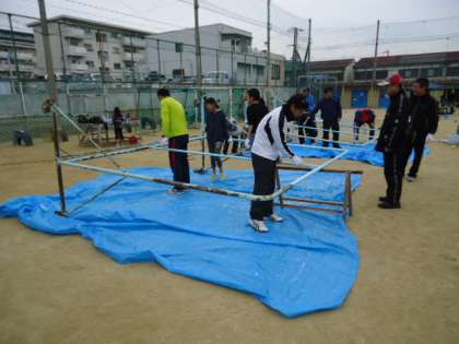 普段使っている防球ネットの枠を塗装して張り替えたり、一輪車を分解して使える部品を再利用したりして、きれいに使いやすいようにしました。