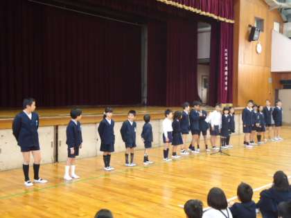 あいさつ名人のみんなは、これからの児童朝会や児童集会で前に出てあいさつをしてくれます。