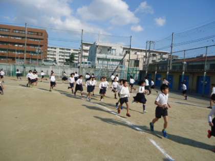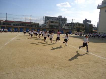 しかし、全校児童が走るのには運動場が狭いため、偶数学年と奇数学年で交互に実施します。