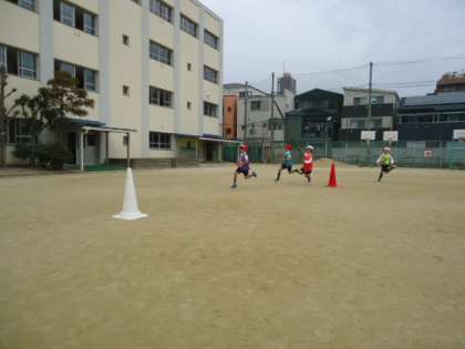 バトンも陸上用のものを使って、ちょっぴり高学年気分です。