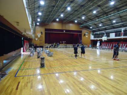 会場となる講堂の清掃や設営だけでなく、玄関や廊下、トイレなどもしっかり清掃しました。