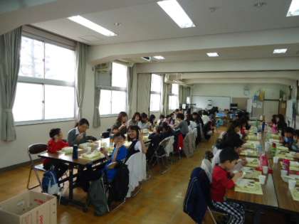 児童や参加された保護者の皆さんで協力して配膳して、いただきました。
