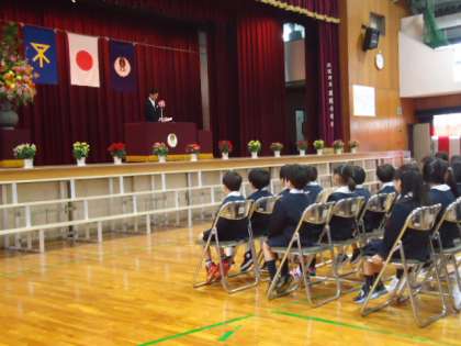 式中は、学校長やPTA会長のお話をしっかり聞いて、返事をしたり、手を挙げたりする人も見られました。