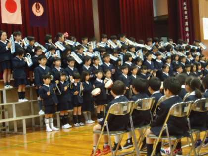 呼びかけや合奏や歌で、学校の楽しい所を紹介してくれました。