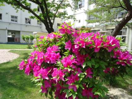桜の季節は過ぎましたが、代わって中庭では藤やツツジの花が満開です。