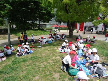 今日は天気が良いので、すぐとなりにある扇町公園で食べました。