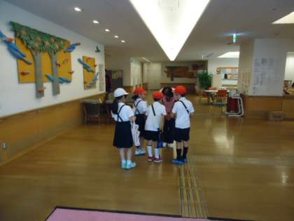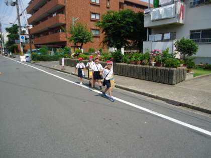 交差点では、左右の確認をしっかりするなど、月曜日にした交通安全指導で習った事を守りながら歩きました。