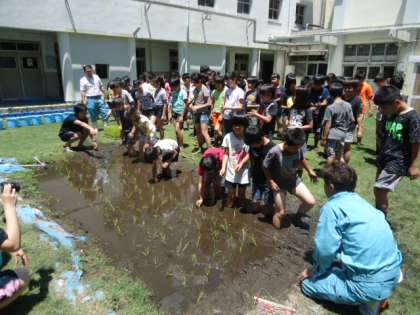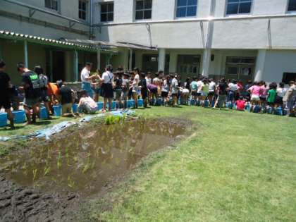 今日はJA職員の方をゲストティーチャーにお招きして、田植えをしました。
