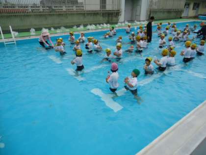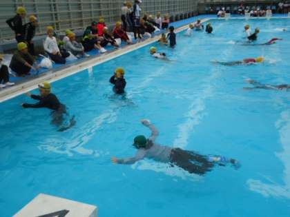 ついこの間学校のプールに入りはじめたばかりですが、しっかりと手順を守って訓練する事ができました。