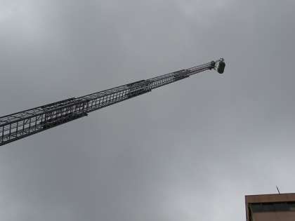 みんなの代表として、はしご車のゴンドラに先生を乗せていただきました。