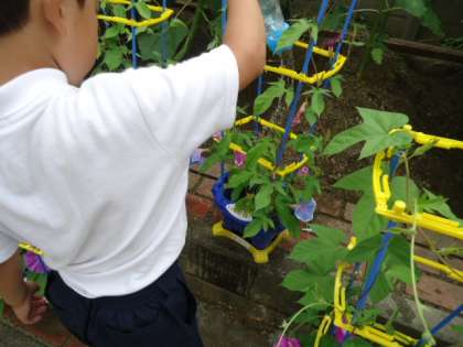 その様子を見に行くと、「今日は4つ咲いたよ。」「わたしのは5つ!」と次々に教えに来てくれます。