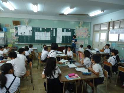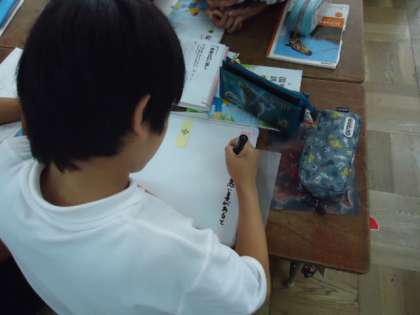 みんなは、話し合いながら「石の上にも三年」や「ちりも積もれば山となる」というようなことわざを使って、上手に文章作りをしていました。