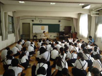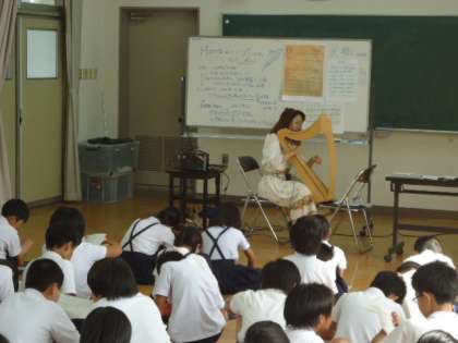 6年生がキャリア教育の一環として、ゲストティーチャーにハープ奏者の徳井様をお迎えして、授業を受けました。
