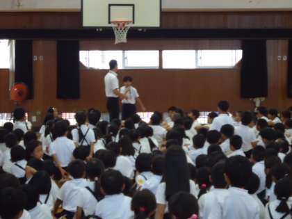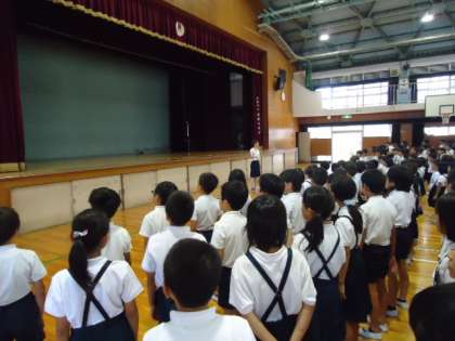 次に、生活指導の先生から、夏休みの過ごし方で、一番大切な「安全にすごす事」についてのお話がありました。