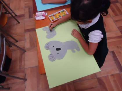 ライオンや、キリンやコアラなど、自分の好きな動物を画面いっぱいに一生懸命描いています。