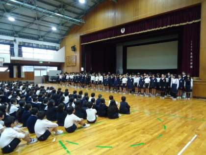 今日の児童集会は、6年生によるメッセージ集会をしました。